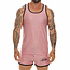 Toffe khaki roze Jor tank-top gemaakt van een grove meststof met zwarte biesjes.